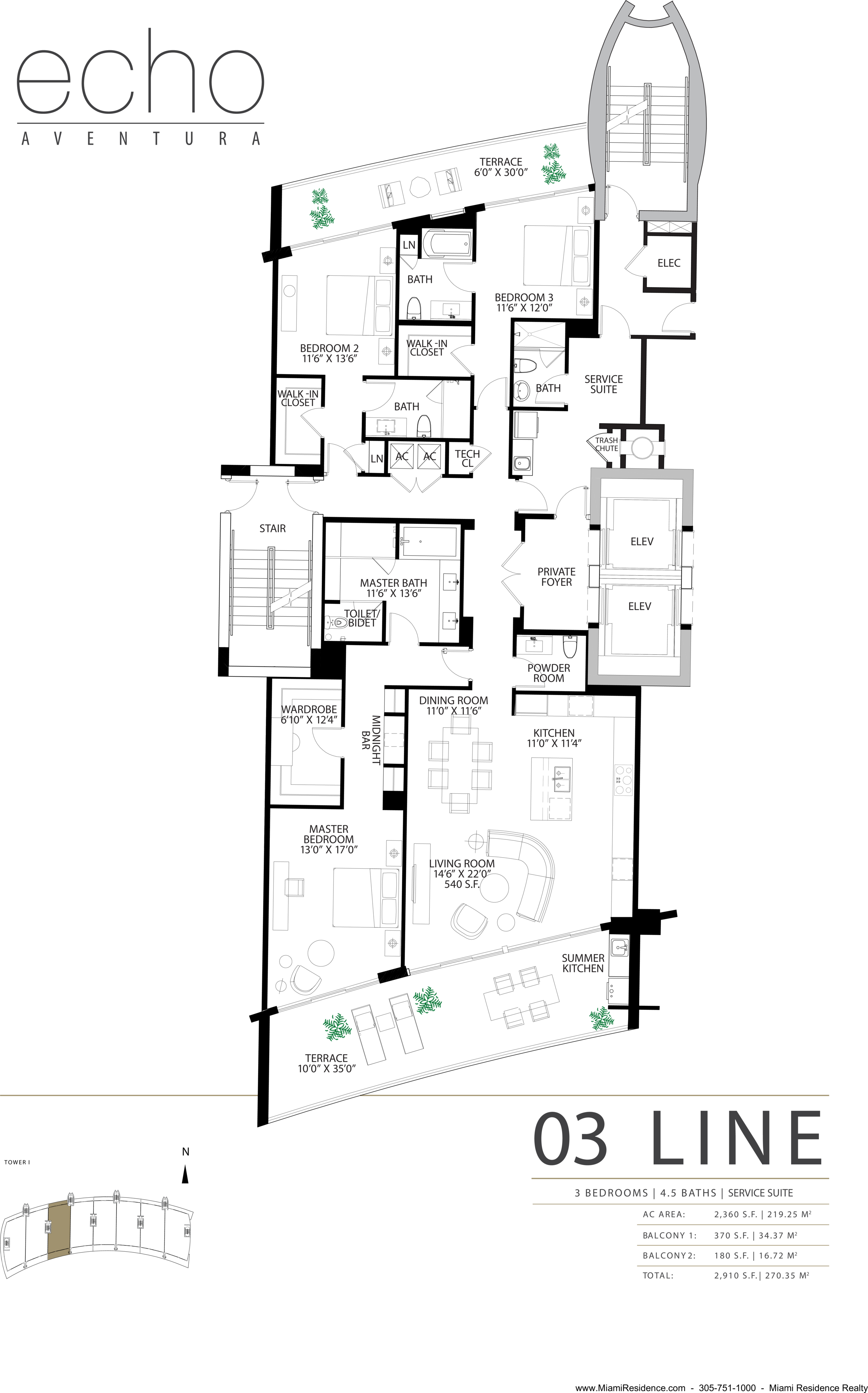 3250 NE 188th St #603, Aventura, FL, 33180 This elegant fully furnished 3-bedroom plus den, 4.5-bath residence at Echo Aventura offers 2,238 SqFt of living space. It includes two parking spaces and spacious terraces with a summer kitchen and BBQ, perfect for entertaining. The master suite has a minibar with fridge, and the kitchen comes with Sub-Zero appliances, wine cooler, coffee machine, industrial range, and built-in ovens. The residence is fully equipped with designer furniture, TVs, and smart home technology. Enjoy a balcony off the bedrooms with north views, and another balcony from the master and living areas with beautiful southern views of the Intracoastal. Ideally located close to Aventura Mall, fine dining, and Sunny Isles Beach.