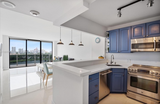 3675 N Country Club Dr #1705, Aventura, FL, 33180 Move in ready!!!! Discover your dream retreat in this fully renovated, furnished 1 bedroom, 1 1/2 bath unit with stunning views of Turnberry Golf Course, the ocean, and the city skyline. The open kitchen features elegant wood cabinetry, porcelain countertops & GE, SS appliances, perfect for culinary enthusiasts. The bathroom boasts a glass-enclosed shower. The spacious balcony invites outdoor entertaining. Newer AC. Building has exceptional amenities, including an Olympic-sized heated pool, Jacuzzi, barbecue grill area, clubhouse, gym, party room, courtesy bus to shopping, 24-hour front desk attendant, security, & covered parking. laundry room on each floor. Walking distance to Aventura mall. A rated schools. Minutes to beaches, casinos & Hard Rock Stadium!