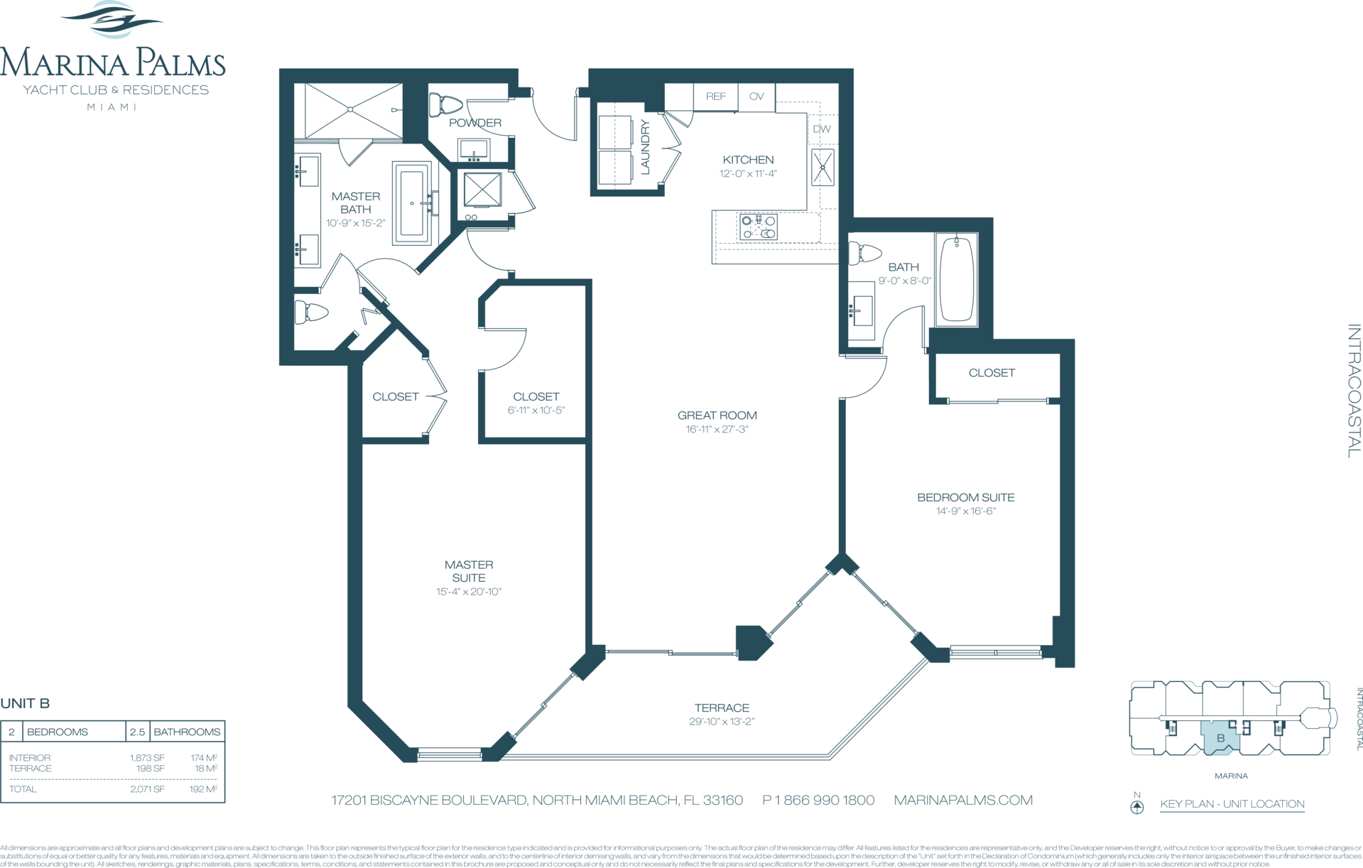 This distinguished luxury residence is situated in the Marina Palms North Tower, a premier condominium and yacht club developed in 2015 to the highest standards of design and construction. The property features an exceptionally spacious two-bedroom split floorplan with 1,718 square feet under air, two large ensuite baths appointed with Grohe fixtures and European cabinetry, and an additional guest bathroom. The highly desirable "five-line" configuration offers larger terraces—approximately 225 square feet—with southeast exposure and views encompassing the bay, intercoastal, ocean, the development`s mega-yacht marina, and panoramic skyline vistas. Interior appointments include a modern chef’s kitchen with WOLF and Sub-Zero appliances, specialty lighting, electric window shades, oversized custom walk-in closets, premium hardware, and luxury finishes.Any questions about Marina Palms?