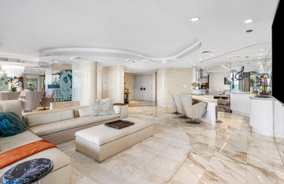 1400 #303/304, 1500 S Ocean Blvd, FL, Boca Raton One-of-a-kind 4 BD (3 bed plus office) 4.5 BA in The Addison offers panoramic ocean views from nearly every room, framed by sliding glass doors that wrap the perimeter of the home. Built to be two separate units combined into one, the layout forms a striking circular design centered around a private elevator foyer, giving the entire home a rare and architecturally captivating flow. The interiors showcase iconic 80s-inspired design, from sculptural curves to LED ceiling lighting and creative glass paneling. It is an exceptional opportunity to modernize a truly distinctive space while preserving the architectural character that makes it so special.