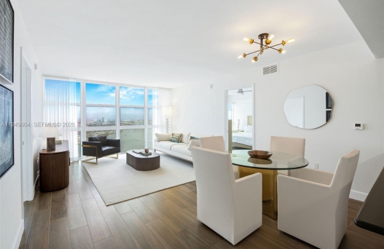50 Biscayne Blvd #3904, Miami, FL, 33132 Refined Downtown Miami living awaits from this expansive 39th-floor 2 Bed + Den / 2 Bath residence at iconic 50 Biscayne, offered fully furnished for a truly turnkey opportunity. This large east-facing home is filled with natural light and framed by floor-to-ceiling impact glass showcasing sweeping views of Biscayne Bay, Bayfront Park and the Miami Beach skyline. The open-concept living and dining areas offer a seamless setting for entertaining, complemented by a sleek kitchen with black stone countertops, stainless steel appliances, and generous storage. A spacious den provides flexibility for a private home office, media lounge, or guest space, while the desirable split-bedroom layout enhances privacy and livability. The oversized primary suite features ample closet space and a spa-inspired bath with dual vanities, soaking tub, and glass-enclosed shower. Contemporary flooring, in-unit washer/dryer, and a clean neutral palette complete this move-in ready residence. 50 Biscayne offers full-service, resort-style amenities including a grand pool deck with cabanas and BBQ area, modern fitness center, sauna, steam and massage rooms, locker rooms, two resident lounges, business center, valet, 24-hour security, and concierge services. Ideally positioned just ssecondsfrom Bayfront Park, Bayside, Whole Foods, Kaseya Center, the Metromover, and minutes to Brickell City Centre with world-class dining, shopping, and nightlife.