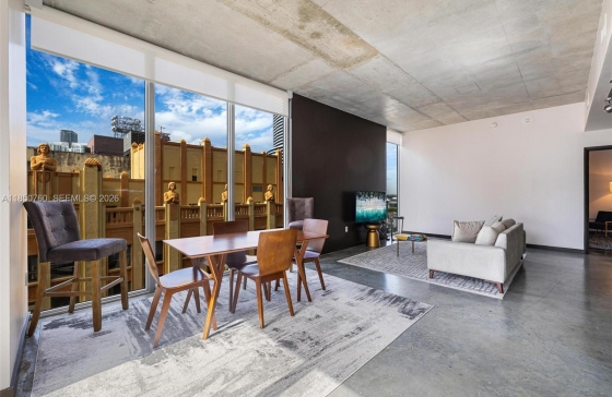 Spacious 2 bed / 2 bath corner loft in the coveted ‘01 line at Centro Condominium. This bright, modern unit features 10-ft floor-to-ceiling windows, private balcony, open kitchen, spa-style baths, polished concrete floors, custom closets, and in-unit laundry. Images are virtually staged and showcase a similar unit on a higher floor, offering a clear sense of the layout and design. This unit is located on a lower floor. Centro allows flexible rentals with a 31-day minimum, making it a great option for investors or seasonal use. Full-service amenities include a rooftop pool, gym, sauna, sky lounge, and 24/7 concierge. Walk to Bayfront Park, Metromover, Kaseya Center, and more. Valet and rental parking available nearby.Any questions about Centro?