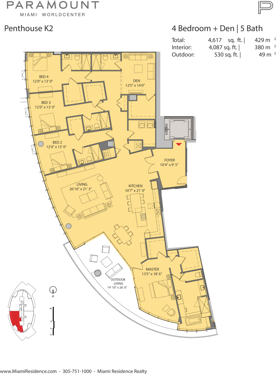 851 NE 1st Ave #5201, Miami, FL, 33132 Experience the pinnacle of elevated living from the 52nd floor of the world-renowned Paramount Miami Worldcenter. This masterpiece features 4 bedrooms and 5 full bathrooms, fully furnished and curated by the legendary interior designer Adriana Hoyos. The expansive floor plan boasts soaring 10-foot ceilings and private elevator access that opens into a grand foyer, framing breathtaking, unobstructed panoramic views of Biscayne Bay, the Atlantic Ocean, and the shimmering Miami skyline. The defining feature of this residence is its massive, record-breaking 2,500-square-foot wrap-around terrace—the largest in the building—offering an unparalleled private outdoor sanctuary for entertaining against a backdrop of endless blue horizons. Residents enjoy a chef’s kitchen equipped with premium Sub-Zero and Wolf appliances, 3 assigned parking spaces, and access to the most comprehensive amenity package in the world, including tennis courts, multiple resort-style pools, golf simulator, rooftop observatory, indoor basketball court, and a spa that rivals your favorite weekend escape. Perfectly positioned in the heart of downtown, this high-floor sanctuary serves as a true sky-mansion, providing a lifestyle of absolute privacy and prestige. It is a legacy property designed for the discerning buyer who demands the very best in Miami`s most ambitious urban core.