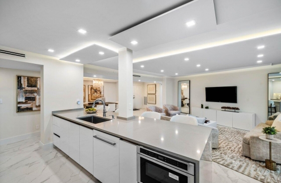 4740 S Ocean Blvd #508, Highland Beach, FL, 33487 Highly desired SPLIT-BEDROOM floor plan with INTRACOASTAL VIEWS from the 5TH floor, visible from every bedroom. This 2 bed/2 bath residence offers 1,870 sq ft and features TWO PRIMARY SUITES. Completely upgraded in 2025 with a true quality renovation, including all new electrical and plumbing, new AC, new water heater and IMPACT GLASS throughout. Modern dropped ceilings with integrated LED lighting throughout. The expansive open-concept layout features a beautifully designed chef`s kitchen with Bosch appliances, ample cabinetry, and a clean, modern finish. Located in a fully renovated building with ALL ASSESSMENTS PAID IN FULL by the seller. Building offers: 24-hour concierge and security, PRIVATE BEACH CLUB, tennis courts, resort-style pool, clubhouse, gym, and a marina with boat slips.