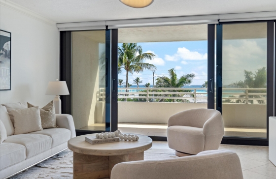 3450 S Ocean Blvd #401, Highland Beach, FL, 33487 Discover coastal living at Casuarina, a hidden gem nestled in the heart of Highland Beach, perfectly positioned between Boca Raton and Delray Beach. This luxurious boutique building offers more than just a home--it`s a sanctuary where breathtaking ocean views and ultimate luxury converge.Unit 401 welcomes you with its spacious 3 bedrooms, 2 bathrooms, and 1,830 square feet of open-concept living. Step into the renovated kitchen, designed with stainless steel appliances and abundant storage, catering perfectly to culinary enthusiasts and family gatherings.This corner unit boasts balconies that frame both direct ocean and pool views, inviting you to savor every sunrise from your private, oversized covered balcony. Enjoy peace of mind with 24-hour security and a newly renovated lobby