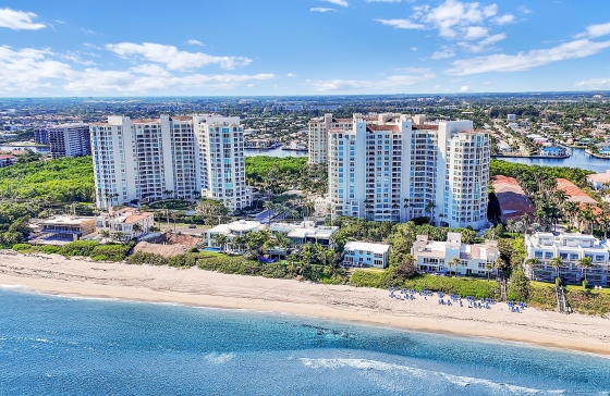 3700 #608, 3720, FL, 3740 S Ocean Blvd LUXURY condo in a resort-style community with private Ocean Club and beach access. You feel sense of arrival as you step off the modern elevator into your private foyer and enter this 2BR w/Den and 2 and half bath residence featuring multiple large balconies, with striking vistas of Ocean and tropical grounds. This luxury condo offers 9-ft ceilings, marble and porcelain floors, elegant kitchen and floor-to-ceiling impact glass windows for abundant natural light. The primary suite includes his and hers walk-in closets, a spa-style bath, and access to a private balcony. A second balcony, located between the kitchen and dining room, provides a convenient space for outdoor dining or relaxing. Additional features include a versatile den w/built-ins, a spacious laundry room with ample storage