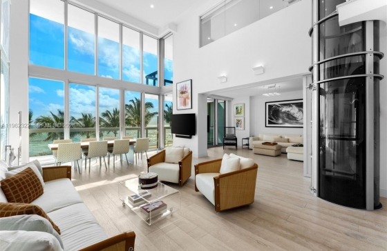 6899 Collins Ave #403, Miami Beach, FL, 33141 A true masterpiece of beachfront loft living at the Carillon Wellness Resort, Beach House 03 offers the feeling of a private beachfront home. This sanctuary of space and light boasts a dramatic, open-concept floor plan with 20-foot ceilings and expansive, light-drenching windows. A grand staircase leads to an open-air office with mesmerizing ocean views, and the grand suite includes a private balcony, 2 walk-in closets, and spans the full length of the unit. A private internal elevator provides effortless movement between both floors. Beach House 3 includes two primary suites. One on the main level and the Grand Suite on the second floor. The thoughtful layout includes multi-purpose rooms with innovative, collapsible walls that can effortlessly expand the floor plan or be partitioned into private retreats, seamlessly adapting to any lifestyle. Additional features include a generously proportioned laundry room, extensive oversized closets, and dedicated on-site storage. Owners have unlimited access to The Carillon`s world-class amenities: a globally renowned spa, cutting-edge fitness programming, four heated pools, diverse culinary dining venues, and a full-service beach club. This residence is the perfect combination of a highly flexible, sophisticated-designed home and resort living.