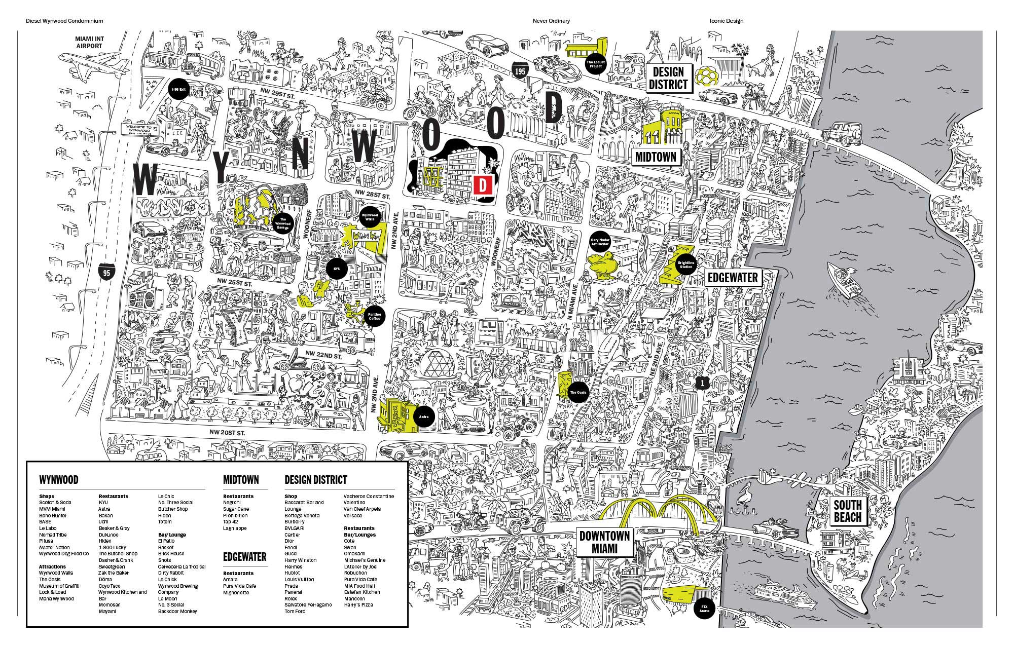 Steps away from the exceptional and daringly beyond the norm. Wynwood is the future of Miami, pulsing with ever changing authentic experiences in art, gastronomy, nightlife and fashion. Creatives of every genre gravitate to this cultural hub where a thriving urban playground is at your front door. Attracting talent and growth like never before, the energy in Wynwood is electric. This is why major firms such as Spotify and Live Nation have chosen this dynamic destination for their global headquarters along with hosting Bitcoin 2021, the world’s largest cryptocurrency conference and countless annual Art Basel activations. At the forefront of change, Wynwood is leading Miami’s tech boom as an incubator and catalyst for a better tomorrow. That kind of energy cannot be denied, and its inspiration is present in every aspect of Diesel Wynwood