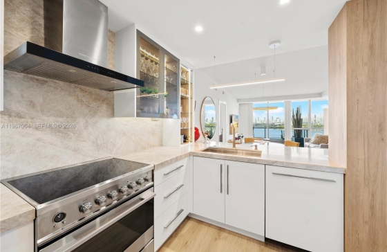 540 West Ave #911, Miami Beach, FL, 33139 Professionally Remodeled 2BD/2BA Premier Corner w/ Oversized Balcony & Miami Skyline Views. Beautifully updated 2/2 flow-thru residence w/open, modern layout. Move -in - ready home offers spacious living, contemporary Gourmet Fisher & Paykel kitchen w/Taj Mahal Quartzite counters & custom cabinets. Built in shelves & LED ambient lighting create the perfect ambiance. Master bathroom features custom cabinets, full size soaker tub & stone sinks, Porcelanosa tiles & smart toilet/bidet combo w/ambient lighting. Additional Professionally appointed details: Built-in color changing LED Soffits, fully Electric window treatments & built-in home office. Standout feature is the oversized corner balcony showcasing breathtaking, unobstructed views of the downtown Miami skyline and the ocean—perfect for relaxing or entertaining. Located in the boutique Bentley Bay, offering an incredible lifestyle- walk to major attractions. Monthly rentals allowed in North Tower- also a great investment opportunity!