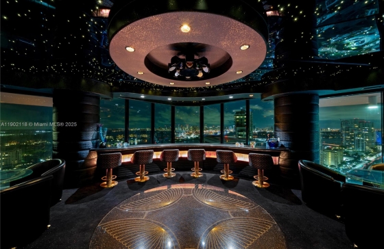 300 S Pointe Dr #TH 3103, Miami Beach, FL, 33139 CASA DISCO IN THE SKY ~ HIGH-GLAMOUR ART DECO REVIVAL WITH WRAPAROUND UNOBSTRUCTED VIEWS OF THE CITY, OCEAN & BAY BY ARNOLD SCHULMAN AT THE NEWLY RENOVATED PORTOFINO TOWER IN SOUTH OF 5TH STREET NEIGHBORHOOD! 2-Story TH with Private Elevator Entry into 5,450 SF Interior Living Space + Terraces with 3 Bedrooms + 4 Baths + 2 Powder + a 600 SF Disco Room with Rolls-Royce inspired Starlight Ceiling & Direct Skyline views. Living area with Bar + Black Lacquer Media Room with Sunrise & Sunset views. Black Galaxy Granite flooring & Cloud-like Curved Ceilings. Primary Suite in Mirrors & Velvet with Oversized walk-in Wardrobes + Huge Primary Bath with double sinks, soak-in tub & shower. Office in Zebra Wood with en-suite Bath. Service Suite with full bath. 3 Parking + Storage Room + storage unit.