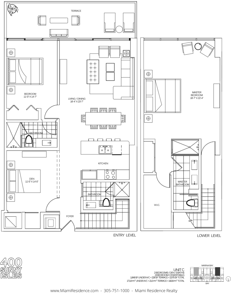 400 Sunny Isles Blvd #916, Sunny Isles Beach, FL, 33160 Experience Luxury waterfront living in this impressive condominium. This spacious residence offers two large bedrooms on a separate lever with breathtaking views of the bay and Oleta Park, along with three full bathrooms and a large den that can easily be converted into a third bedroom. The home features and open concept kitchen with top of the line appliances, electric blind, Italian porcelain flooring, and an expansive balcony perfect for entertaining or relaxing. One assigned parking space plus and other valet service. Enjoy resort style amenities such as tennis court, swimming pool, spa, gym, and poolside lounge area. Marina is available managed by a third party.