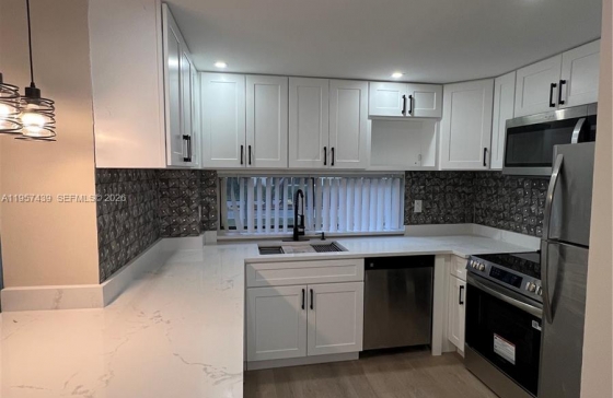 17021 N Bay Rd #124, Sunny Isles Beach, FL, 33160 This first-floor apartment is ideal for those seeking easy access and tranquility. With two master bedrooms, each with a private bathroom and walk-in closet, you`ll enjoy a spacious and functional living area. The modern laminate flooring and LED lighting create a warm and sophisticated ambiance. The modern, open-concept kitchen features quartz countertops, perfect for cooking and socializing. Located within walking distance to the Beach and adjacent to a shopping center, shops, and restaurants. Don`t miss this opportunity to live in a unique location!