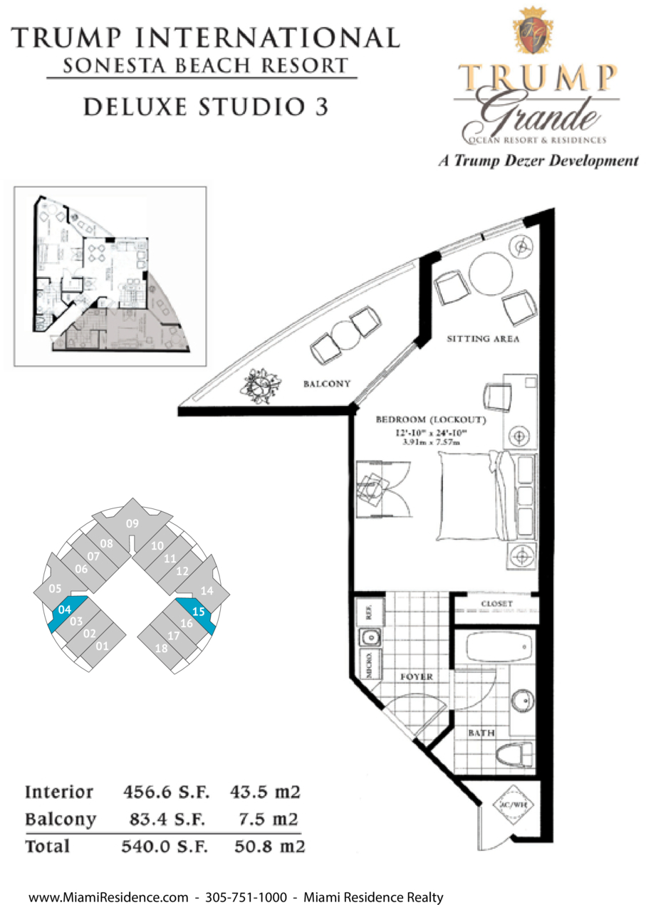 Trump International Beach Resort studio 456 sq. ft with balcony SW view of intracoastal/city and partial ocean view. Unit can be rented with hotel programs (see attached) or new owner can decide not to rent with hotel and manage himself as a private unit owner, (see attached requirements in program page 3-4). Great amenities : oceanfront 2 pools, 3 restaurants, bars, full service pools and 1000 feet long beach, Free valet for owners, Gym, sauna/ full spa, 24 hours Consierge, room service, kids day care, tennis courts, basketball, waterspouts, cabanas...Any questions about Trump International?