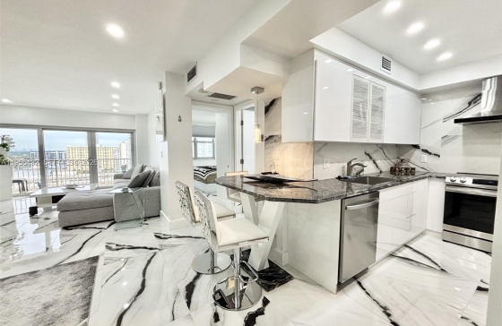 1965 S Ocean Dr #15B, Hallandale Beach, FL, 33009 Get ready to be wowed the moment you open the door! This exquisite intracoastal condo is ideally located just across the street from the beach, offering beautiful ocean and intracoastal views. The 798 sq ft, one-bedroom, one-bathroom residence has been fully remodeled with permits using top-of-the-line materials & appliances and features high-impact windows for safety, energy efficiency, and quiet comfort. The open-concept layout highlights a stunning kitchen with premium appliances, quartz countertops, and custom Italian cabinetry, ideal for entertaining and everyday living. The beautifully updated bathroom reflects the same high-end finishes throughout. The unit is offered fully furnished with high-end furniture, making it completely move-in ready. Enjoy a resort-style lifestyle with amenities including a boat dock, two restaurants, poolside snack bar, fitness center, two pools, tennis and basketball courts, courtesy bus service & more! All assessments paid by seller. Low HOA $788/month, including A/C, hot water, cable, Wi-Fi, pest control, and more. This is a must-see and a must-have residence—schedule your showing today!